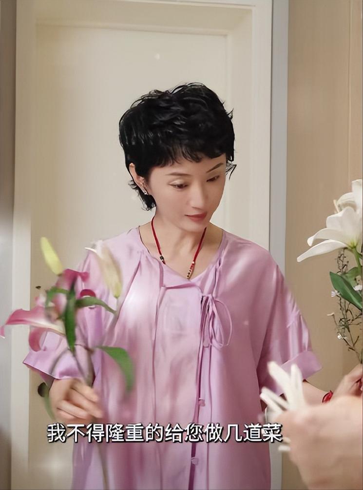 而张澍穿着粉色新中式套装,在餐厅里插花,偶尔走进厨房看一眼,许亚军就趁机夸她:“你打扮得跟仙女一样,负责貌美如花就行。”
